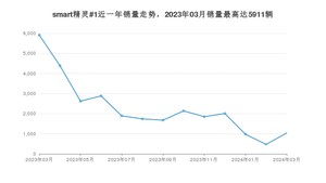 2024年3月,smart精灵#1销量为1041辆,同比下降82.39%,环比增长121.49%。2023年03月-2024年03月份,smart精灵#1销量为29602辆,同比增长71.08%。