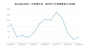 2024年3月,MG MULAN销量为309辆,同比下降69.25%,环比增长74.58%。2023年03月-2024年03月份,MG MULAN销量为10019辆,同比增长57.75%。