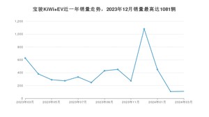 2024年3月,宝骏KiWi EV销量为110辆,同比下降82.46%,环比增长3.77%。2023年03月-2024年03月份,宝骏KiWi EV销量为5052辆,同比下降79.1%。
