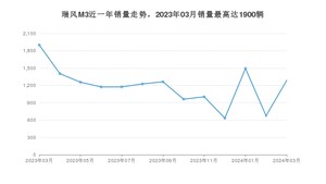 2024年3月,瑞风M3销量为1287辆,同比下降32.26%,环比增长90.95%。2023年03月-2024年03月份,瑞风M3销量为15449辆,同比下降4.19%。