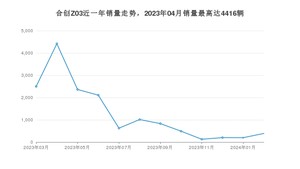 2024年3月,合创Z03销量为388辆,同比下降84.47%,2023年03月-2024年03月份,合创Z03销量为15265辆,同比下降32.18%。