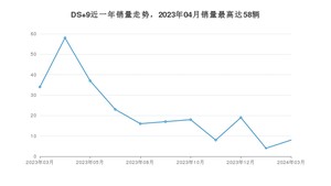 2024年3月,DS 9销量为8辆,同比下降76.47%,环比增长100%。2023年03月-2024年03月份,DS 9销量为242辆,同比下降34.59%。