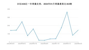 2024年3月,合创A06销量为146辆,同比增长3.55%,环比增长78.05%。2023年03月-2024年03月份,合创A06销量为1652辆,同比增长99.04%。