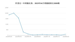 2024年3月,轩度销量为106辆,同比下降94.27%,环比增长307.69%。2023年03月-2024年03月份,轩度销量为6322辆,同比下降61.79%。