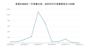 2024年3月,富康ES600销量为10辆,同比下降76.74%,2023年03月-2024年03月份,富康ES600销量为2499辆,同比下降74.03%。