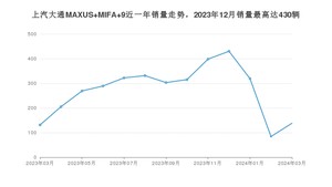 2024年3月,上汽大通MAXUS MIFA 9销量为138辆,同比增长5.34%,环比增长64.29%。2023年03月-2024年03月份,上汽大通MAXUS MIFA 9销量为3534辆,同比增长64.6%。