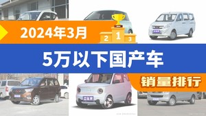 2024年3月5万以下国产车销量排行榜,宏光MINI EV夺得冠军,第二名差距也太大了