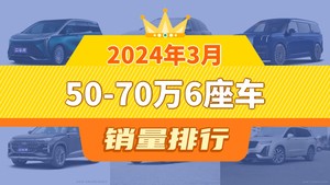 2024年3月50-70万6座车销量排行榜,世纪以838辆夺冠