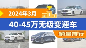 2024年3月40-45万无级变速车销量排行榜,奥德赛屈居第三,航海家成最大黑马