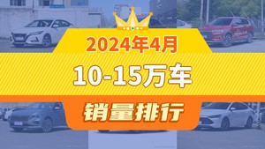2024年4月10-15万车销量排行榜,轩逸以24270辆夺冠,星瑞升至第9名
