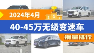 2024年4月40-45万无级变速车销量排行榜,格瑞维亚夺得冠军,第二名差距也太大了