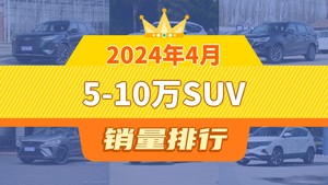 2024年4月5-10万SUV销量排行榜,捷途X70屈居第三