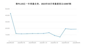 2024年5月,秦PLUS销量为18721辆,同比下降56.35%,环比增长1.19%。2023年05月-2024年05月份,秦PLUS销量为198922辆,同比下降47.53%。