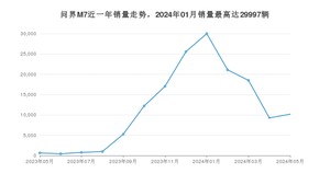 2024年5月,问界M7销量为10181辆,同比增长1%,环比增长9.87%。2023年05月-2024年05月份,问界M7销量为151879辆,同比增长463.08%。