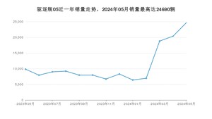 2024年5月,驱逐舰05销量为24690辆,同比增长150.91%,环比增长21.25%。2023年05月-2024年05月份,驱逐舰05销量为144130辆,同比增长65.36%。