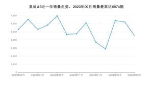 2024年5月,奥迪A3销量为4516辆,同比下降14.81%,环比下降27.22%。2023年05月-2024年05月份,奥迪A3销量为69213辆,同比下降1.53%。
