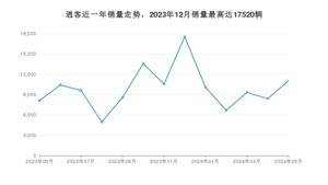2024年5月,逍客销量为11037辆,同比增长35.82%,环比增长31.49%。2023年05月-2024年05月份,逍客销量为128860辆,同比下降7.05%。