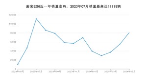 2024年5月,蔚来ES6销量为8094辆,同比增长696.65%,环比增长46.44%。2023年05月-2024年05月份,蔚来ES6销量为76045辆,同比增长135.6%。