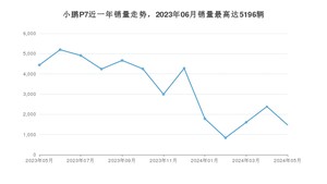 2024年5月,小鹏P7销量为1473辆,同比下降66.82%,环比下降38.19%。2023年05月-2024年05月份,小鹏P7销量为43041辆,同比下降15.23%。