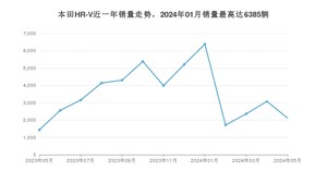 2024年5月,本田HR-V销量为2115辆,同比增长47.39%,环比下降31.31%。2023年05月-2024年05月份,本田HR-V销量为45831辆,同比增长2%。