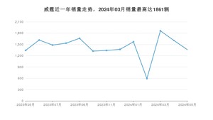 2024年5月,威霆销量为1361辆,同比增长1.34%,环比下降15.26%。2023年05月-2024年05月份,威霆销量为18659辆,同比增长6.17%。