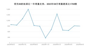2024年5月,领克09新能源销量为901辆,同比下降8.15%,环比下降1.53%。2023年05月-2024年05月份,领克09新能源销量为12532辆,同比下降3.21%。