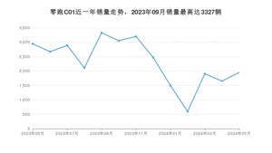 2024年5月,零跑C01销量为1954辆,同比下降33.61%,环比增长18.35%。2023年05月-2024年05月份,零跑C01销量为30270辆,同比增长197.46%。