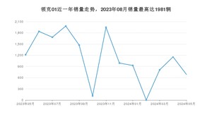 2024年5月,领克01销量为686辆,同比下降43.45%,环比下降40.66%。2023年05月-2024年05月份,领克01销量为14817辆,同比下降17.55%。