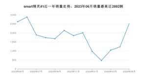 2024年5月,smart精灵#1销量为2527辆,同比下降3.7%,环比增长105.95%。2023年05月-2024年05月份,smart精灵#1销量为23055辆,同比下降5.19%。