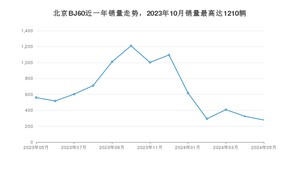 2024年5月,北京BJ60销量为278辆,同比下降50.36%,环比下降14.2%。2023年05月-2024年05月份,北京BJ60销量为8627辆,同比增长162.14%。
