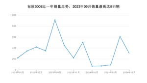 2024年5月,标致5008销量为298辆,同比增长37.33%,环比下降51.15%。2023年05月-2024年05月份,标致5008销量为4534辆,同比增长13.44%。