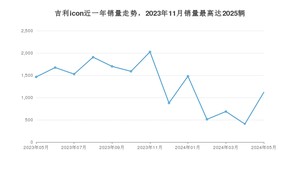 2024年5月,吉利icon销量为1119辆,同比下降23.51%,环比增长175.62%。2023年05月-2024年05月份,吉利icon销量为16963辆,同比下降43.35%。