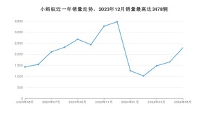 2024年5月,小蚂蚁销量为2300辆,同比增长60.95%,环比增长39.06%。2023年05月-2024年05月份,小蚂蚁销量为26985辆,同比下降64.43%。