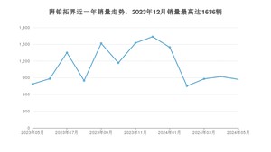2024年5月,狮铂拓界销量为870辆,同比增长10.41%,环比下降5.64%。2023年05月-2024年05月份,狮铂拓界销量为14581辆,同比增长316.12%。