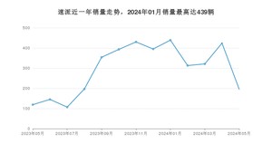 2024年5月,速派销量为195辆,同比增长63.87%,环比下降54.01%。2023年05月-2024年05月份,速派销量为3832辆,同比增长67.19%。