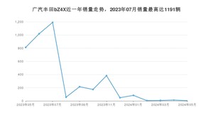 2024年5月,广汽丰田bZ4X销量为4辆,同比下降99.51%,环比下降69.23%。2023年05月-2024年05月份,广汽丰田bZ4X销量为4012辆,同比下降15.31%。