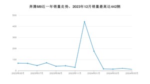 2024年5月,奔腾M9销量为12辆,同比下降82.09%,环比下降42.86%。2023年05月-2024年05月份,奔腾M9销量为1045辆,同比增长945%。
