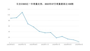 2024年5月,长安CS95销量为4辆,同比下降95.45%,环比下降63.64%。2023年05月-2024年05月份,长安CS95销量为596辆,同比下降81.23%。