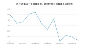 2024年5月,风行·游艇销量为29辆,同比下降94.02%,环比下降67.78%。2023年05月-2024年05月份,风行·游艇销量为3501辆,同比下降38.3%。