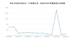 2024年5月,探岳GTE插电混动销量为118辆,同比下降84.2%,环比增长53.25%。2023年05月-2024年05月份,探岳GTE插电混动销量为5379辆,同比下降24.46%。