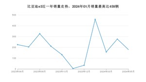 2024年5月,比亚迪e3销量为179辆,环比下降35.38%。2023年05月-2024年05月份,比亚迪e3销量为2208辆,同比下降1.74%。