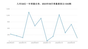 2024年5月,几何G6销量为144辆,同比下降56.23%,2023年05月-2024年05月份,几何G6销量为6655辆,同比增长23.63%。