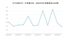 2024年5月,风行S50EV销量为176辆,同比下降41.91%,环比下降35.29%。2023年05月-2024年05月份,风行S50EV销量为3781辆,同比下降76.68%。