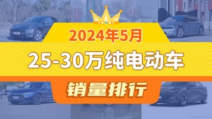 2024年5月25-30万纯电动车销量排行榜,Model Y以39985辆夺冠,问界M5升至第5名