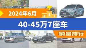 2024年6月40-45万7座车销量排行榜,赛那SIENNA位居第二,第一名你绝对想不到