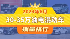2024年6月30-35万油电混动车销量排行榜,格瑞维亚屈居第三,锐界成最大黑马