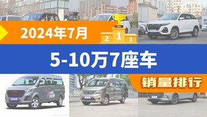 2024年7月5-10万7座车销量排行榜,五菱宏光以5614辆夺冠,东风风光580升至第8名