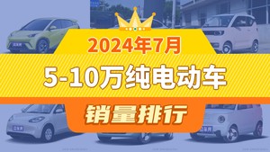 2024年7月5-10万纯电动车销量排行榜,海鸥以34789辆夺冠,钇为3升至第9名