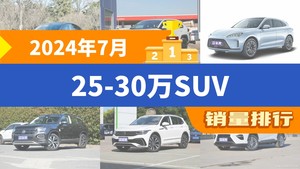 2024年7月25-30万SUV销量排行榜,问界M7屈居第三,探岳成最大黑马