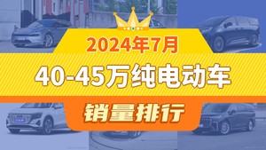 2024年7月40-45万纯电动车销量排行榜,腾势D9屈居第三,智己LS7成最大黑马